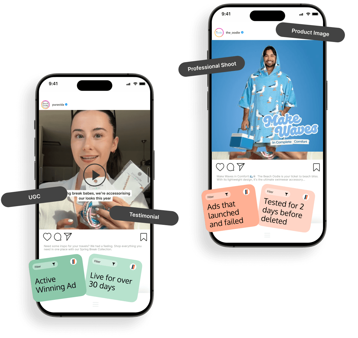 Easily compare winning ad formats, hooks, and offers, with losing ads - so you can take inspiration from the best, and avoid the worst.