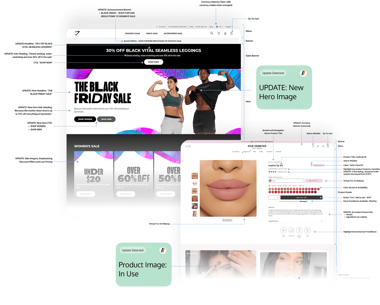 Track the optimizations brands make to their home page, product page and checkout flows